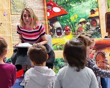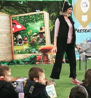 Visitas a colegios en las que lleva historias mágicas que estimulan la imaginación y fomentan el amor por la lectura.